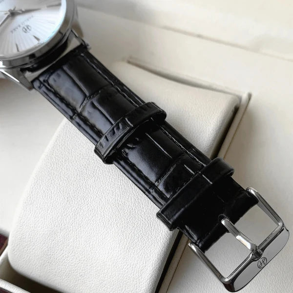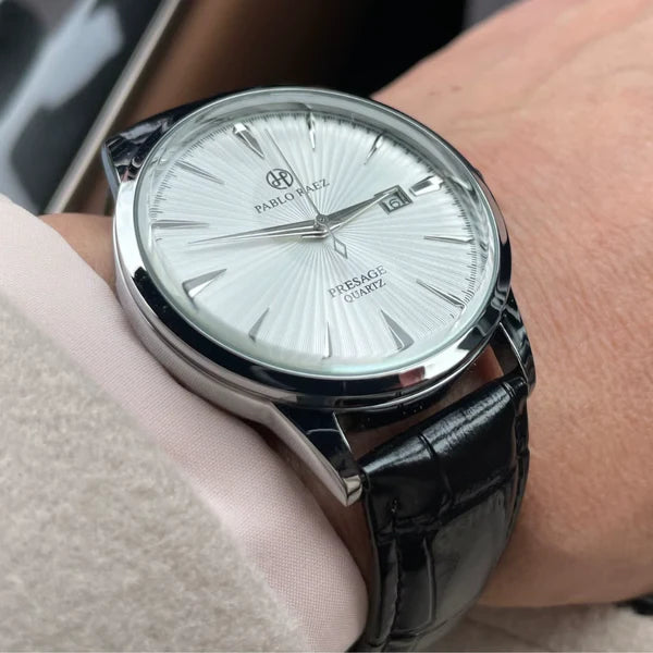 O Semblantti foi criado para homenagear a sofisticação atemporal. Com mostrador limpo, detalhes sutis e janelas abertas que revelam parte do movimento automático, ele combina o clássico ao mecânico de forma discreta. Sua pulseira de couro e caixa em tom dourado completam um visual digno de ocasiões formais, sem abrir mão do conforto diário.